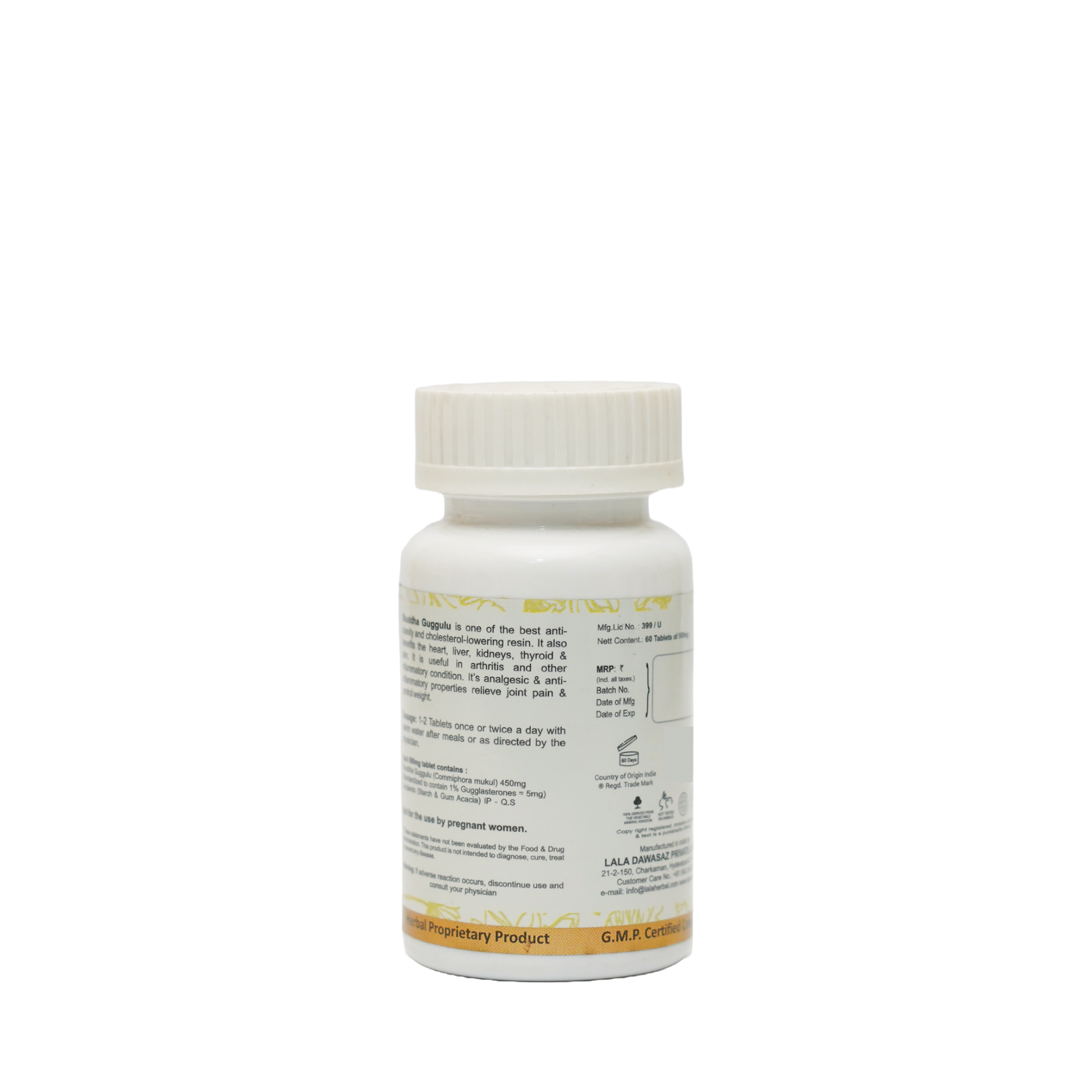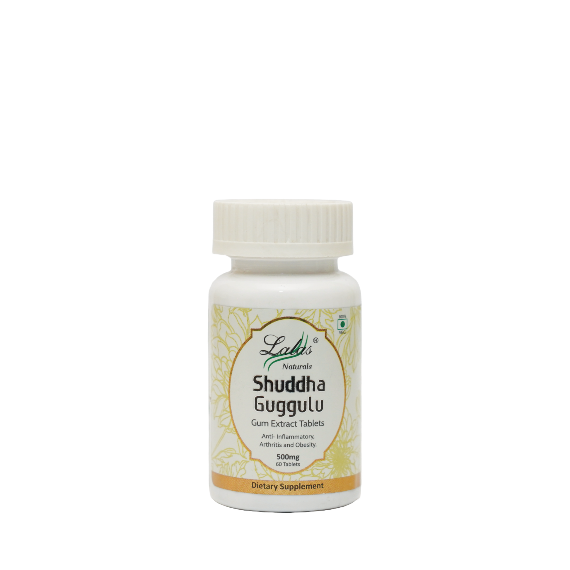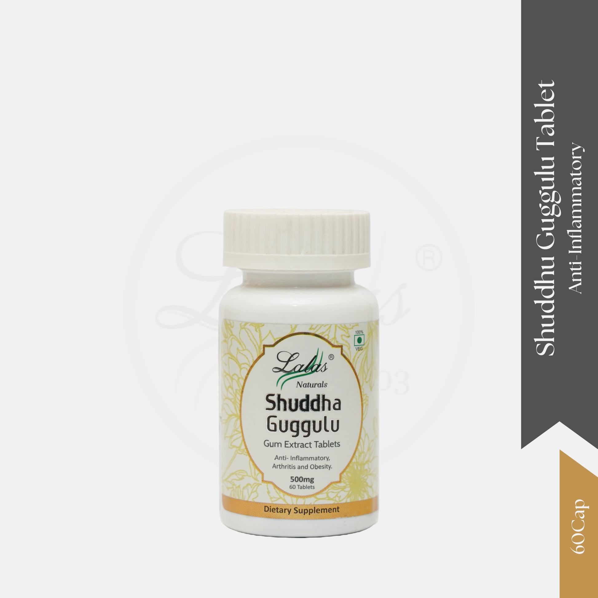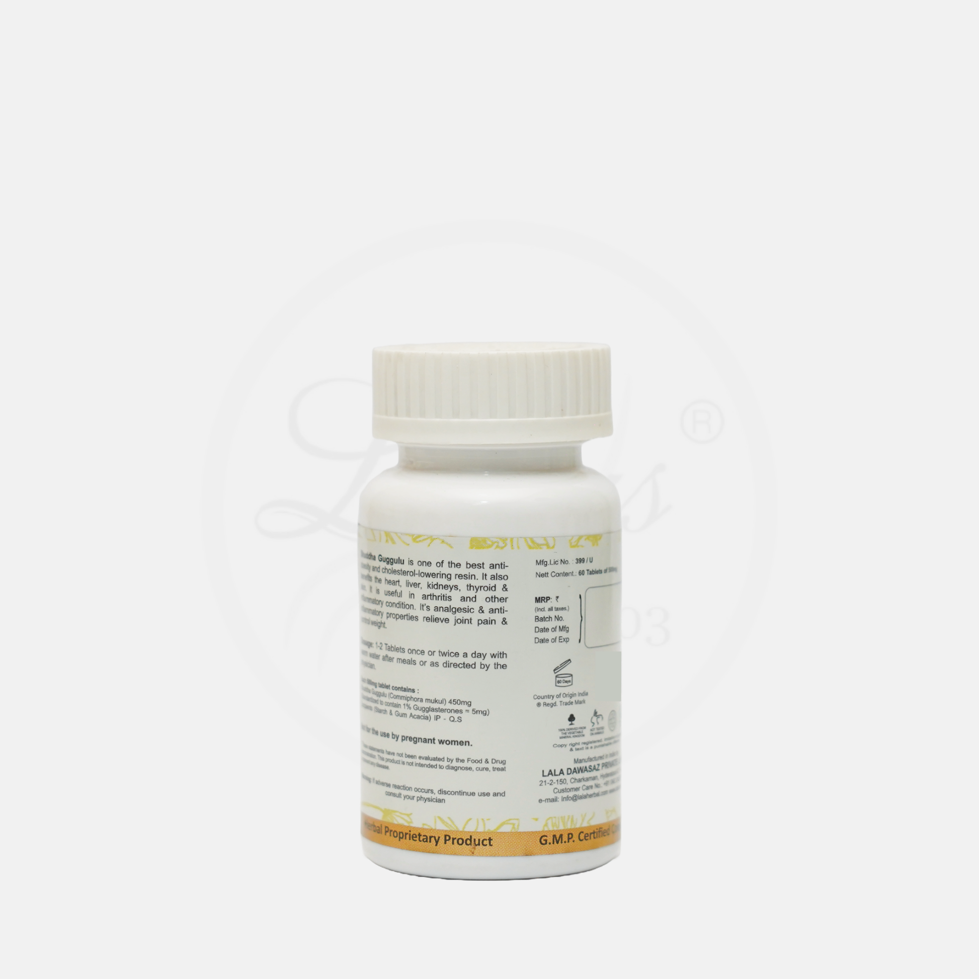Each 500mg tablet contains:</b> Shuddha Guggulu (Commiphora mukul) 450mg, Excipients (Starch & Gum Acacia) IP - Q.S & Preservative (Sodium Benzoate IP)