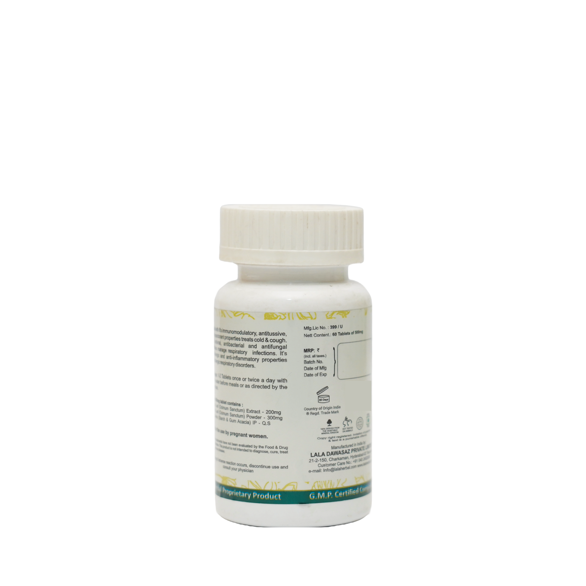 Tulasi Tablet harnesses the powerful immunomodulatory, antitussive, and expectorant properties of Tulasi to effectively relieve cold and cough symptoms. Its antiviral, antibacterial, and antifungal actions support the management of respiratory infections, while its anti-allergic and anti-inflammatory effects help alleviate allergic respiratory conditions. This natural formulation offers expert support for maintaining respiratory health and resilience.