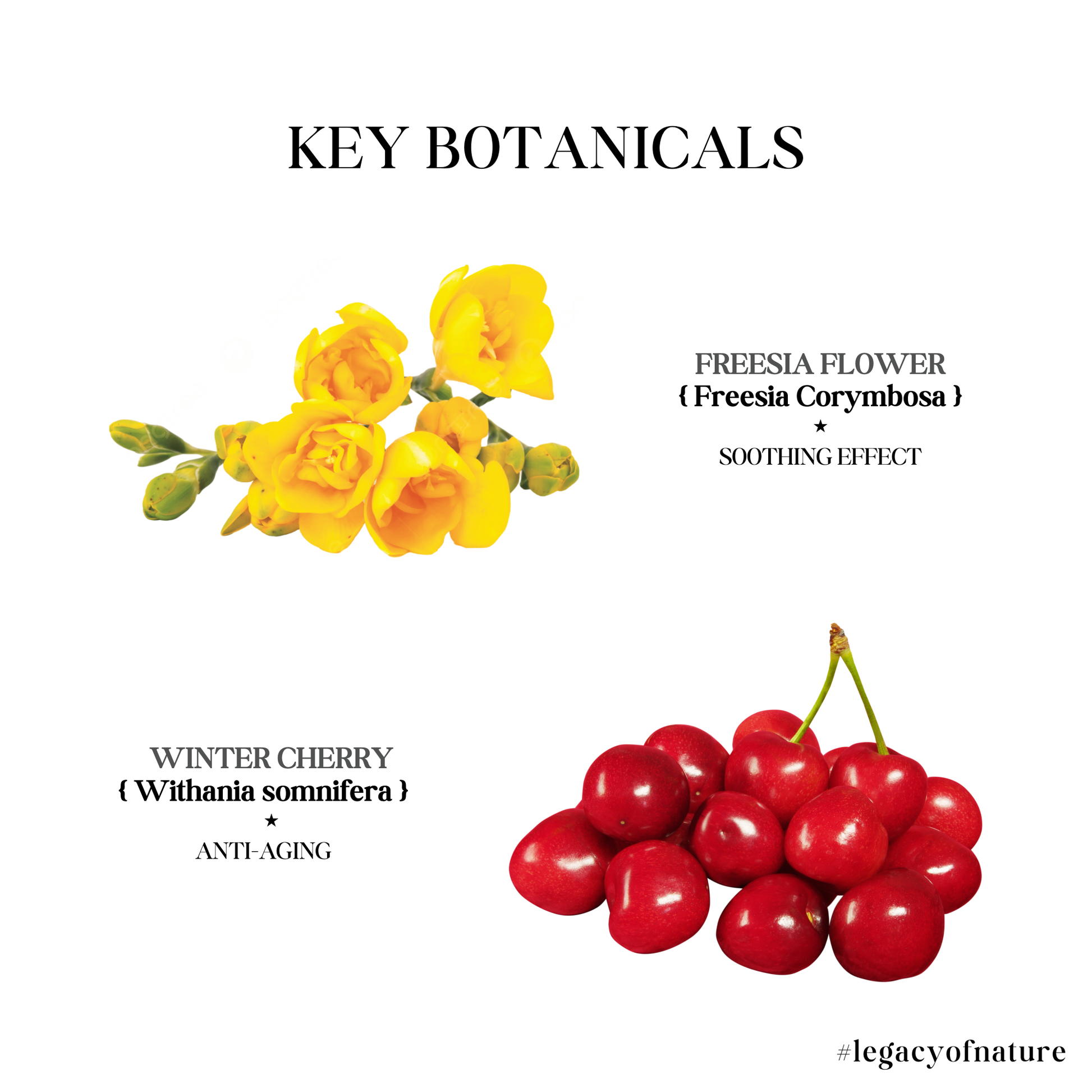 Winter Cherry Lotion is a lightweight yet nourishing emulsion enriched with winter cherry and wild freesia. The cold-pressed winter cherry oil, derived from the Indian Ginseng plant native to Southeast Asia, supports skin resilience while promoting a soft, vibrant texture. This formula, combined with Vitamin C, provides essential hydration and protection, helping to maintain healthy, refreshed skin with daily use.