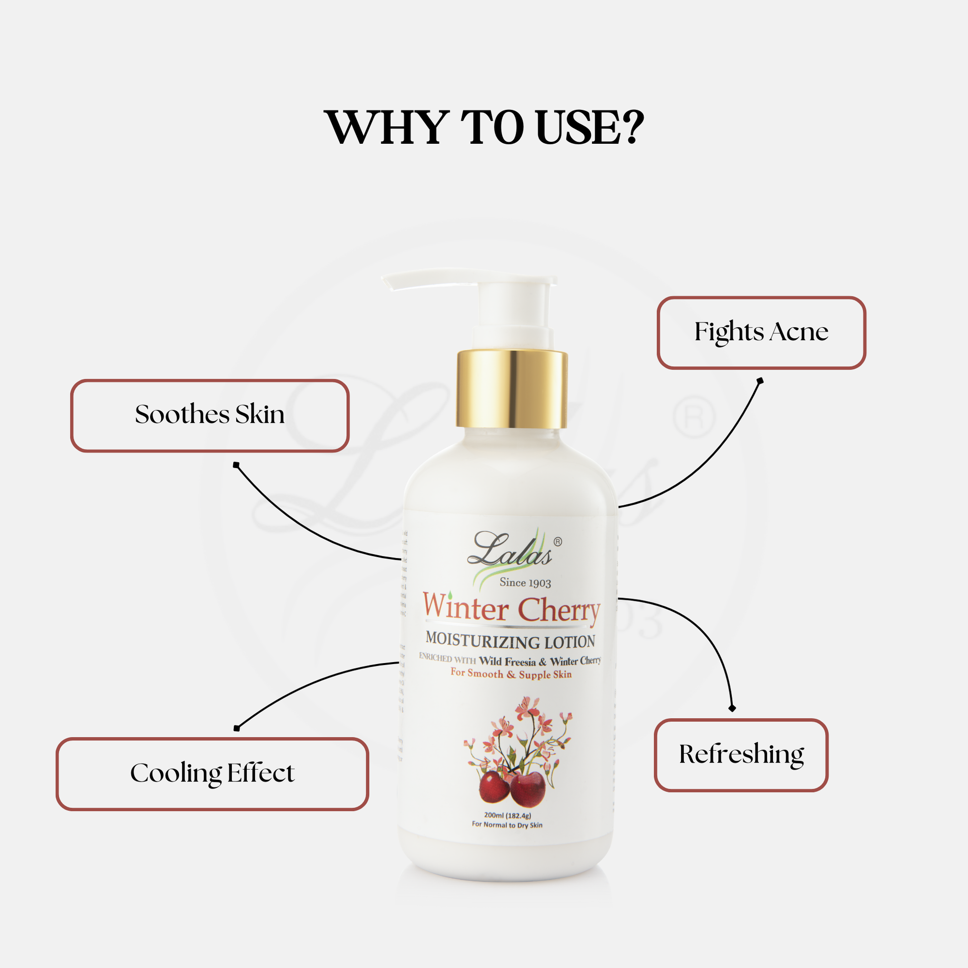 Winter Cherry Lotion is a lightweight yet nourishing emulsion enriched with winter cherry and wild freesia. The cold-pressed winter cherry oil, derived from the Indian Ginseng plant native to Southeast Asia, supports skin resilience while promoting a soft, vibrant texture. This formula, combined with Vitamin C, provides essential hydration and protection, helping to maintain healthy, refreshed skin with daily use.